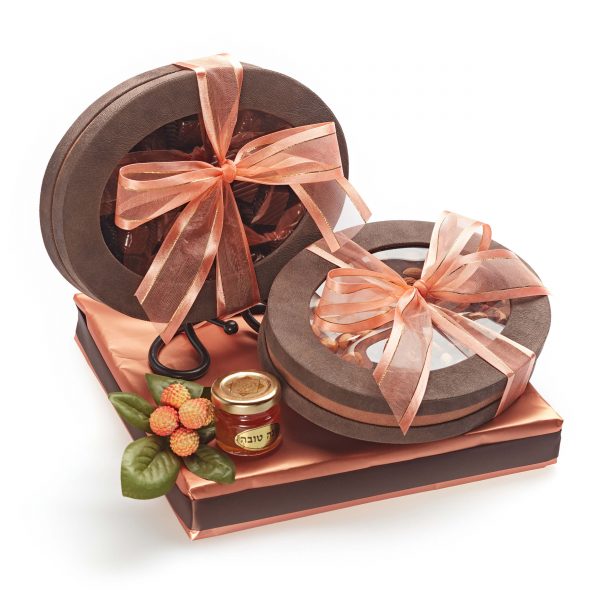 20 chocolats délicieux et notre écorce exquise emballés dans une luxueuse boîte en daim marron.